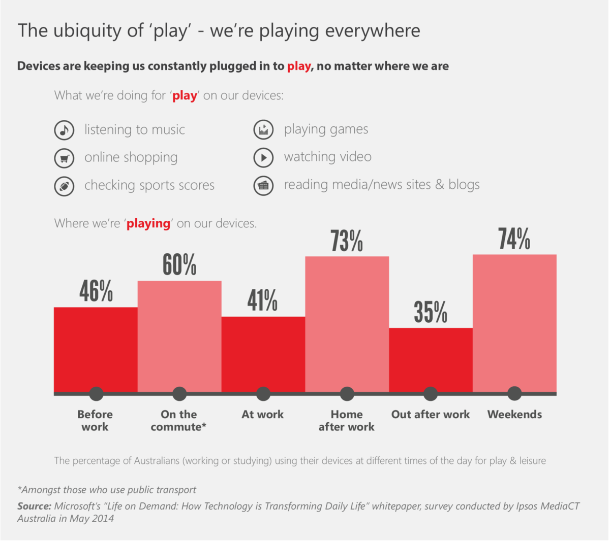 Last week, Microsoft released ‘Life on Demand’, a white paper which looked into the digital habits of 1027 Australians aged 18 – 65 in collaboration with global research firm Ipsos. It revealed Australians are working around the clock due to higher connectivity than ever before, signaling a change in workplace culture with blurred lines between work and play.