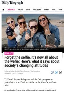 Forget the selfie, it’s now all about the wefie / Daily Telegraph, Courier Mail, Perth Now, news.com.au, gearsofbiz.com, Hong Kong Radio 3