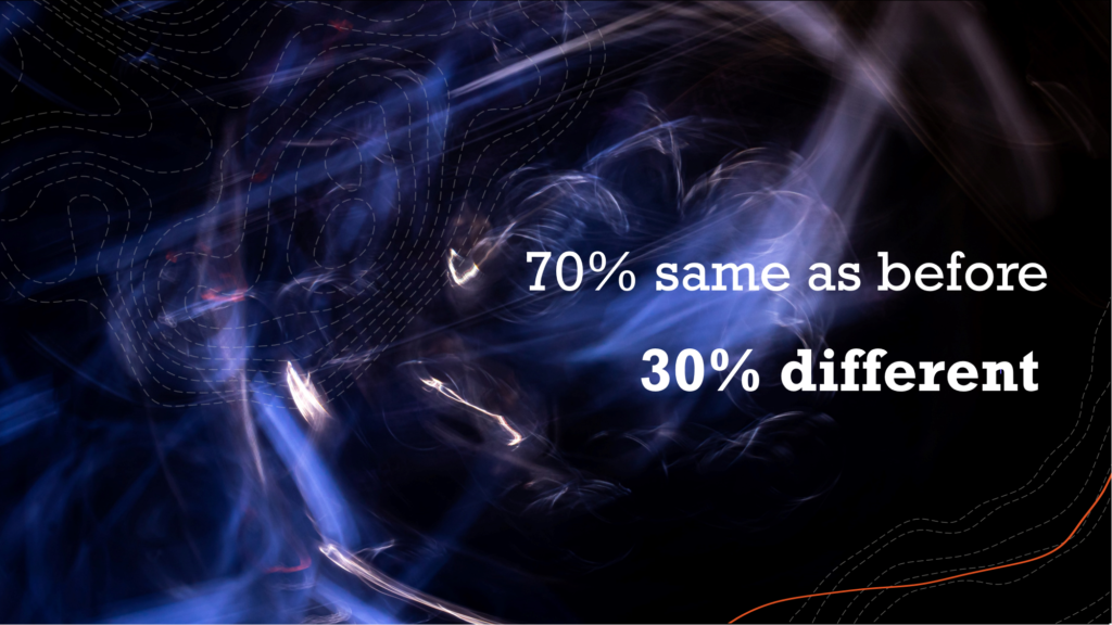 My reality is that 70% of Australian’s will move forward to very similar lives, jobs and businesses to those they left behind pre COVID, which leaves 30% to make the big changes that we’re hearing lots about.