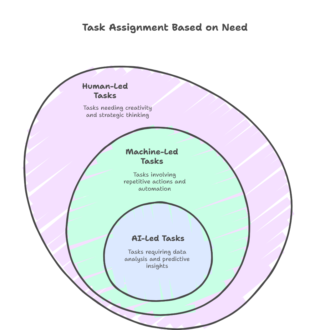 AI-Led → Data-heavy, analytical, or decision-support tasks.
